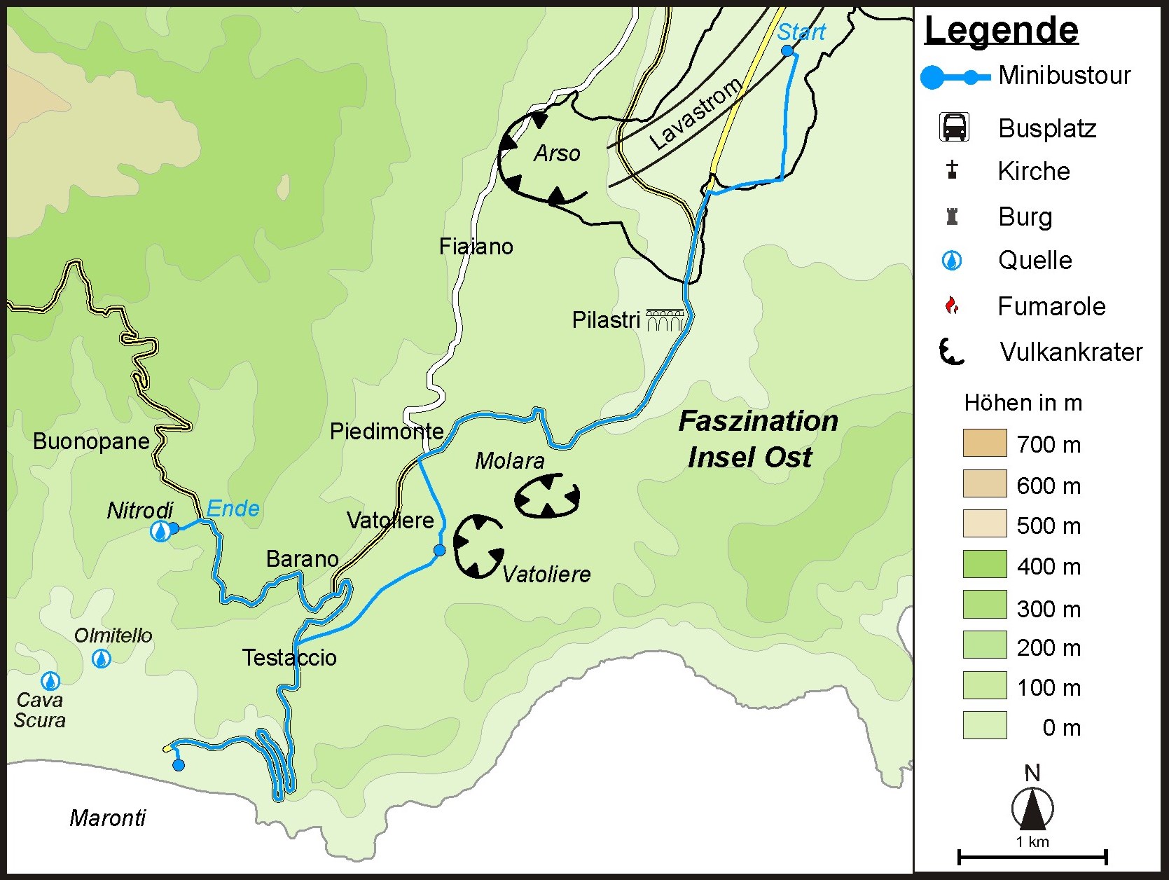Vom Lavastrom zu den heilenden Quellen Dienstag nachmittag, Dauer ca. 2 Std. Tour des Jahres 2026 Details Die Tour Ausflugsbeschreibung Highlights Geeignet für Menchen mit normaler Kondition. Wir starten jeden Dienstag - Nachmittag Startpunkt: Ischia Porto, im Pinienwald Dauer: ca. 15:30 – 17:30 Uhr Gehezeiten: ca. 20 Min. Preis: € 20,00/Person Transfer vom/zum Hotel: inklusive Inklusive Transfer, Abholzeit in: St‘Angelo 14:45h; Panza 14:55h; Cuotto/Citara 15:00h; Forio Zentrum 15:05h; St‘Francesco 15:10h; Lacco Ameno: 15:15h; Casamicciola 15:20h; Ischia Porto/Ponte 15:30h; Cartaromana 15:25h; Maronti 15:10h Auf dieser kurzweiligen Minibustour erkunden wir den Ostteil der Insel. Dort ist im Jahre 1301 der bisher letzte Vulkan ausgebrochen. Seine Lava floss zwischen Ischia Porto und Ischia Ponte ins Meer und hat die Landschaft noch einmal nachhaltig verändert. Wir werden einen kleinen Spaziergang auf diesem Lavastrom unternehmen und uns die Lavasteine unter der Lupe anschauen. Entlang der großen Bruchlinie, die die Insel in den ältesten Teil im Osten und dem jüngeren Teil im Westen trennt, fahren wir oberhal der Marontistrand. Die warmen Thermalwässer im Thermalpark Nitrodi bei Barano, führen uns deutlich vor Augen, dass sich im Untergrund von Ischia noch immer ein Magma-Reservoir befindet. Auf eine Frage, die daher alle bewegt werden wir eingehen: Wann wird der nächste Vulkan der auf der Insel ausbrechen? Am Ende der Tour bringt Sie unser Busfahrer mit dem Minibus wieder zum Hotel zurück. INSIDER TIPP: Der Thermalpark Nitrodi wartet nicht nur mit Thermalquellen auf, sondern auch mit ganz köstlichen, hausgemachten Essen- bzw. The-Späzialitäten - für die Wellness von Innen! Tut ja auch gut! Bei der Nitrodi-Quelle gibt es eine öffentlich zugängige Wasserzapfstelle. Wenn Sie sich Wasser abfüllen möchten, bringen Sie bitte eine entsprechende Flaschen mit. GEOLOGEN-TIPP: Die Gesteine des jüngsten Lavastroms der Insel Ischia enthalten tolle Minerale. Schon mit bloßem Auge lassen sich weiße glänzende Kristalle erkennen, so genannte Sanidine. Diese Minerale bilden sich im sich langsam abkühlenden Magma bei Temperaturen um 1.000-900°C. Die kleineren grünen Kristalle hingegen heißen Olivine. Sie bilden sich bereits, wenn das Magma noch über 1.200°C heiß ist! Vielleicht nehmen Sie sich ja ein kleines Stück dieses Lavastroms aus dem Jahre 1301 als Andenken mit? Unsere Tour startet auf dem jüngsten Lavastrom der Insel in Ischia Porto. Schroffe Felsen und Pinien begleiten uns auf dem kurzen Spaziergang in der öffentlichen Parkanlage. Von dort aus fahren wir Richtung Süden. Wir halten an einem Vulkankrater, der vor 2.000 Jahren entstanden ist und zusammen mit weiteren Vulkanen eine Vulkankrater-Kette bildet, deren Geheimnis wir lüften werden. Zum Schluss fahren wir zur Nitrodi-Quelle. Diese gilt als der Jungbrunnen der Insel und dems Thermalwasser werden besondere Heilkräfte für Haut und Schönheit nachgesagt. Schon die alten Griechen schrieben dieser Bikarbonat-Thermalquelle der Insel Ischia besondere Heilkräfte für die Haut und für die Schönheit der Damen zu. Probieren Sie es einfach aus! Wirkt übrigens auch bei Herren. Hier in der reizvollen Schlucht der Nitrodi-Quelle endet unsere Tour durch den faszinierenden Osten der Insel Ischia. Nachfolgend finden Sie einige Highlights, die während des Ausfluges gezeigt bzw. erklärt werden: Pineinwald Lavaströme Lavakamm Panoramablicke Vulkankrater Vulkan-Eruptionsvehersage Nitrodi-Quelle Marontistrand Jungbrunnen INSIDER TIPP: auf jeden Fall die Kamera nicht vergessen! buchen » E-Mail senden » Ausflugsteilnehmer