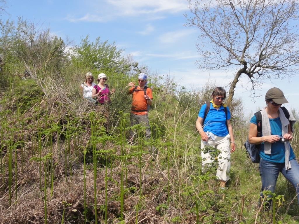 Unser Treffpunkt ist der "Belvedere" von Serrara in ca. 400m Höhe. Wir durchqueren das stille Dorf Serrara und wandern allmählich zum Höhenweg mit seinen Ginsterbüschen und Kräuterwiesen. Nach dem Blick auf das quirlige, weit ausgebreitete Forio führt uns der Wanderweg zunächst durch einen Robinien- und dann durch einen schattigen Kastanienwald. Vorbei an Felsenhäusern, Schneegruben und bizarren Felsformationen wandern wir zum Bergrestaurant bei Santa Maria al Monte, auf dessen Panoramaterrasse wir eine Mittagspause einlegen. Durch Weinberge und Gärten geht es anschließend bergab nach Forio.