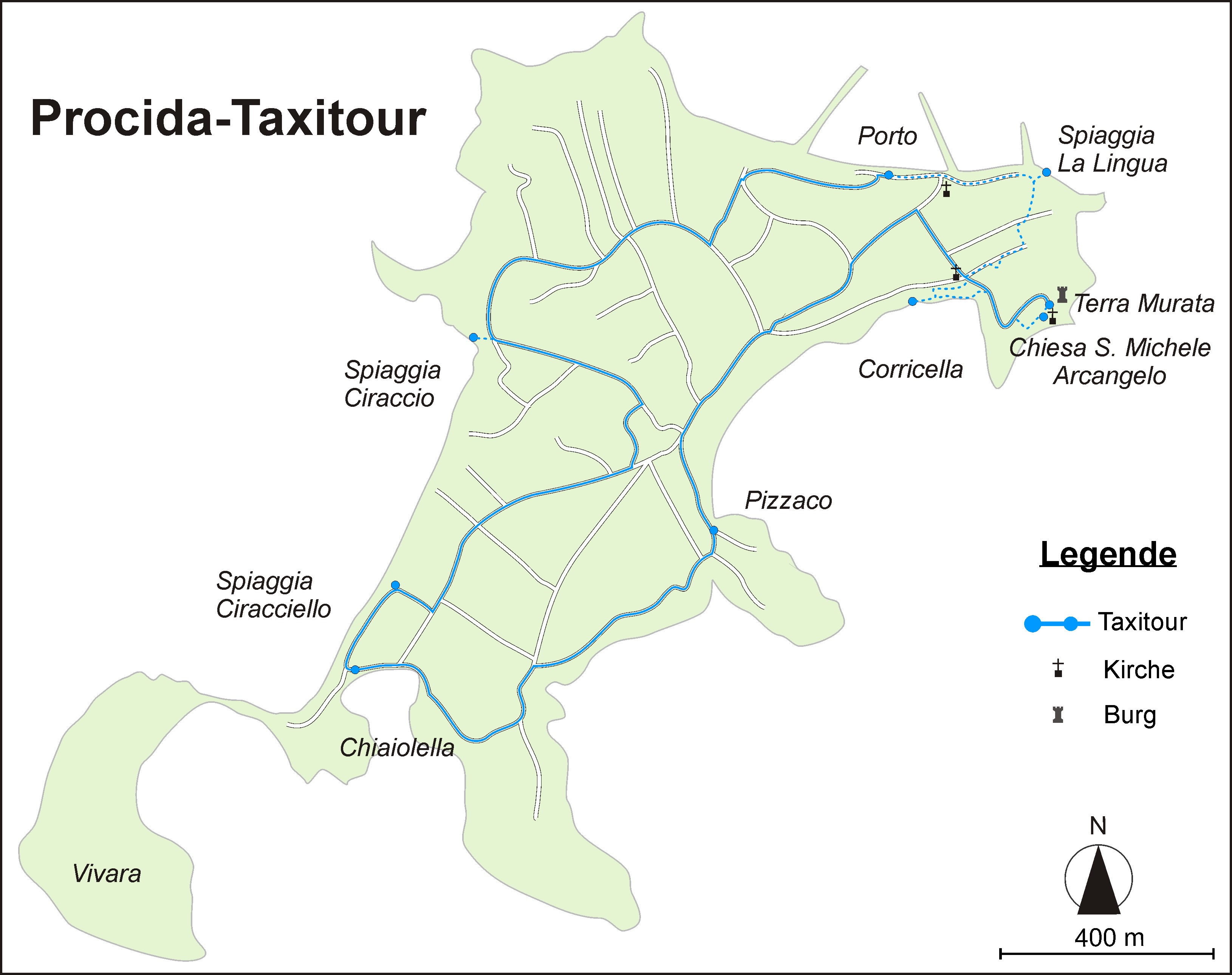Nach unserer Ankunft am großen Hafen von Marina Grande umrunden wir Procida mit dem Taxi.